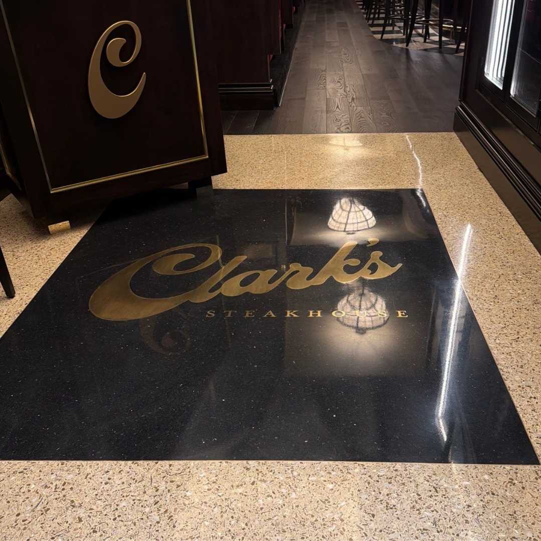 N-Motion Stone & Tile Restoration helped ensure that Clark’s Steakhouse opened beautifully and is set up for long-term performance. From terrazzo floor polishing to brass protection, every detail was handled with precision, delivering a space that is as functional as it is visually stunning.