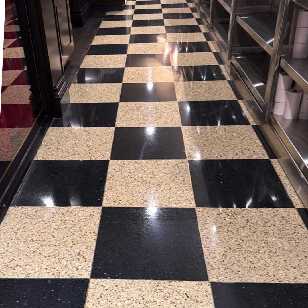 Terrazzo floors were fully polished, sealed, and protected