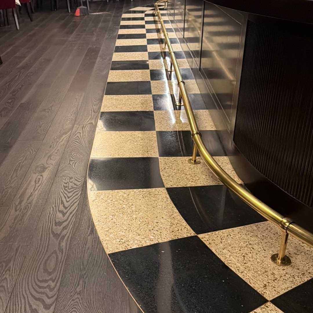 N-Motion Stone & Tile Restoration was brought in to perfect and protect the brand-new terrazzo flooring and clean and polish the brass elements before the restaurant’s grand opening.